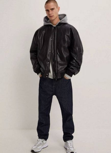 Áo bomber kết hợp với gì để thêm phần năng động? Hoodie sẽ là điểm nhấn tuyệt vời khi phối cùng với bomber nam. Sự kết hợp giữa áo hoodie và áo bomber mang đến cho các chàng trai phong cách trẻ trung, đơn giản nhưng vô cùng nam tính. Đây là một outfit hoàn hảo cho mùa đông này đấy nhé.