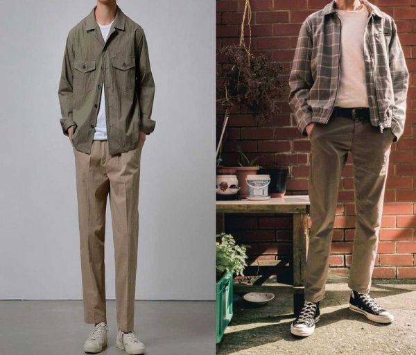 Trong những khoảnh khắc giao mùa cuối thu đầu đông, các bạn nam vẫn có thể tự tin để khoác lên mình chiếc áo phông cùng quần kaki hay jeans, kết hợp với một đôi giày thể thao. Điểm nhấn tạo nên nét thú vị cho set đồ chính là chiếc áo khoác sơ mi rộng bên ngoài, tạo nên một anh chàng bụi bặm và khỏe khoắn.