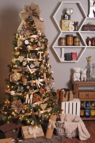 Đây dường như là phong cách dành riêng cho những bạn yêu thích tông màu nâu gỗ và mong muốn có một cảm giác cổ kính, hoài niệm. Bạn có thể phủ đều cây thông của bạn với một số phụ kiện bằng gỗ mộc với tông nâu vàng, bật một playlist nhạc chill cùng ly rượu vang, đêm đông Noel của nàng sẽ trở nên ấm áp lạ thường.