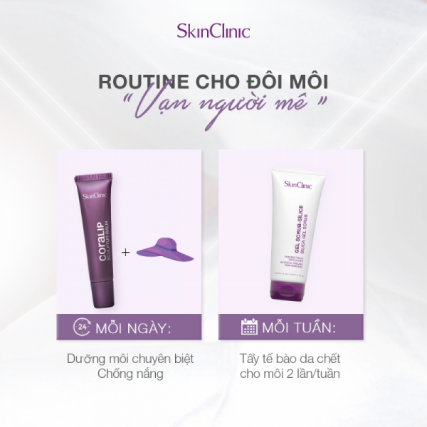 CoraLIP vừa sử dụng như kem dưỡng môi, lại vừa sản phẩm như mặt nạ ngủ cho môi nhưng không phải là sản phẩm tẩy tế bào da chết cho môi. Thế nên, tẩy tế bào da chết cho môi bằng sản phẩm chuyên dụng từ 1 - 2 tuần trên lần sẽ giúp da môi được khỏe mạnh và hấp thụ dưỡng chất từ CoraLIP tốt nhất.
