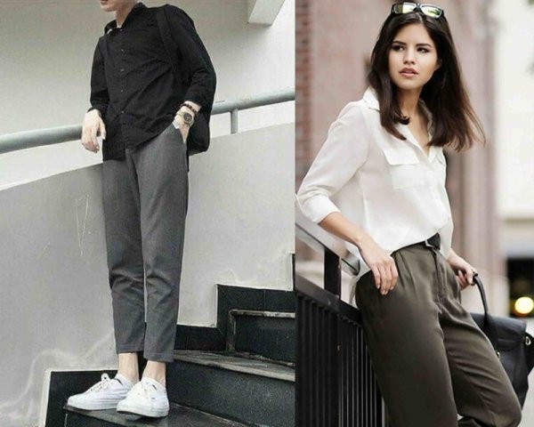 Set đồ này hiện đang được giới trẻ rất yêu thích. Nếu bạn là người đam mê thời trang thì chắc chắn không thể không biết đến set đồ này. Nhìn có vẻ khá đơn điệu, nhưng khi diện lên người trông bạn sẽ cực kỳ cuốn hút và thanh lịch đấy. Theo nhiều khảo sát từ người dùng cho thấy, tỷ lệ các bạn nam yêu thích và diện set đồ này rất cao, nhưng ngược lại các bạn nữ lại có sự e dè vì sợ rằng quần âu sẽ khiến mình trông bị già đi. Tuy nhiên, thực tế không phải như vậy đâu nhé. Để trông trẻ trung và tinh tế hơn khi diện set đồ này thì các bạn nữ nên chọn lựa những mẫu quần tây có kiểu dáng phù hợp với dáng người mình là được nhé.