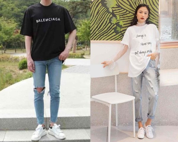 Đây chính là combo “bất tử, bất diệt” với đa số các bạn trẻ hiện nay.. Set đồ này là sự hết hợp hoàn hảo giữa quần jean và mẫu áo phông oversize. Nó giúp bạn hack chiều cao tối đa và trông bạn trẻ trung, năng động hơn. Một mẹo nhỏ xíu giúp bạn trông tinh tế hơn đó chính là sơ vin vạt trước của áo phông để quần jeans hack dáng hiệu quả nhất. Để set đồ hoàn hảo hơn, bạn nên phối cùng với một đôi giày thể thao nhé.