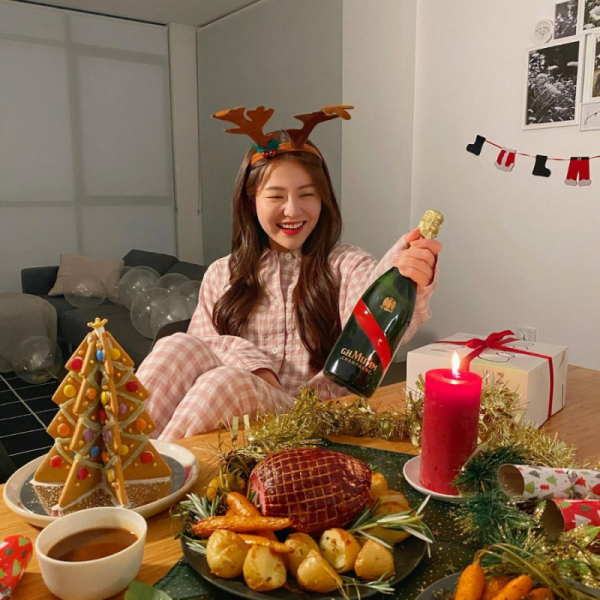 Nàng nào đam mê tinh thần foody và mong muốn có đồ ăn xuất hiện trong cùng khung hình với mình thì không thể nào có thể bỏ qua concept này. Điều bạn cần làm chính là chuẩn bị một bàn tiệc Giáng sinh theo phong cách phương Tây hoặc Á Đông tùy theo sở thích của bạn nhé. Sau khi đã nấu nướng xong thì nàng nhớ sắp xếp sao cho trông thật thịnh soạn là chuẩn. Nếu được, hãy chuẩn bị thêm đạo cụ là một vài ly rượu vang hay nến và các item trang trí Giáng sinh để nàng tạo dáng sống ảo nhé!