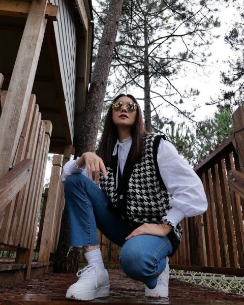 Với những nơi có khí hậu se lạnh như Đà Lạt, áo gile dường như như là một item vô cùng phổ biến với các sao khi phối đồ. Loại áo này vừa có thể giữ ấm, vừa đảm bảo tính thời trang cho nàng, đặc biệt là khi phối cùng với cùng với áo sơ mi trắng hoặc áo thun. Thêm vào đó, nàng có thể lựa chọn mặc gile kèm với chân váy hay quần jeans thì đều đảm bảo mix-match vô cùng hiệu quả.