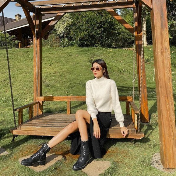 Một cách phối đồ đi Đà Lạt nữ tính và dịu dàng không thể nào có thể bỏ qua dành cho các nàng bánh bèo. Để áo len không quá nhàm chán, bạn có thể phối hợp thêm item váy xếp ly. Set đồ này vừa giúp bạn đảm bảo nét nữ tính, không sến và vẫn đảm bảo tính thời trang. Thêm một đôi boot cao cổ sẽ có thể giúp nàng cộng thêm điểm tuyệt đối.