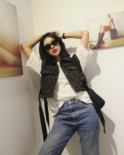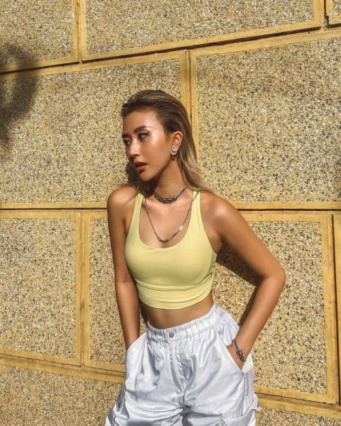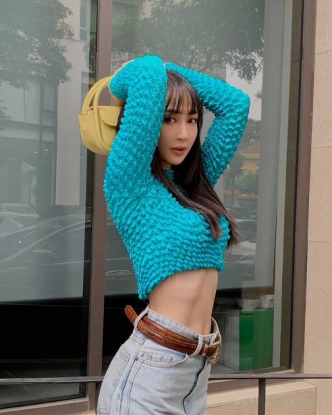 SunHT cũng là một trong các nàng mẫu lookbook nổi tiếng của Hà Thành với phong cách thời trang vô cùng ấn tượng. Xuất thân là người mẫu chụp ảnh và là chủ shop thời trang đình đám nên việc tạo dáng không thể nào có thể làm khó được cô nàng. Nếu nàng muốn khoe trọn vòng eo thon gọn cùng cơ bụng số 11 nhưng vẫn đảm bảo độ tinh tế thì phải làm như thế nào? Vậy thì còn chần chừ gì nữa mà chưa học theo SunHT kiểu chụp khoe cơ bụng siêu chất cùng phong cách Y2K này bằng cách ôm túi, đưa 2 tay vòng qua đầu một cách điệu nghệ.