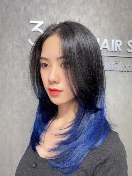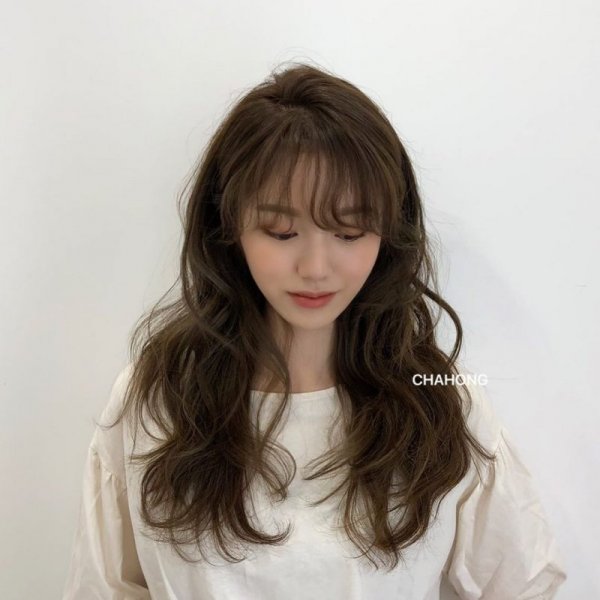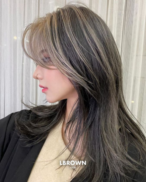 Nếu bạn có vầng trán đẹp và không muốn phần mái che hết điểm sáng của khu vực trên chân mày thì có thể chọn kiểu tóc này. Không chỉ có phần đuôi tóc được cắt tỉa layer mà ngay cả phần mái cũng được tạo sóng vô cùng hút mắt.