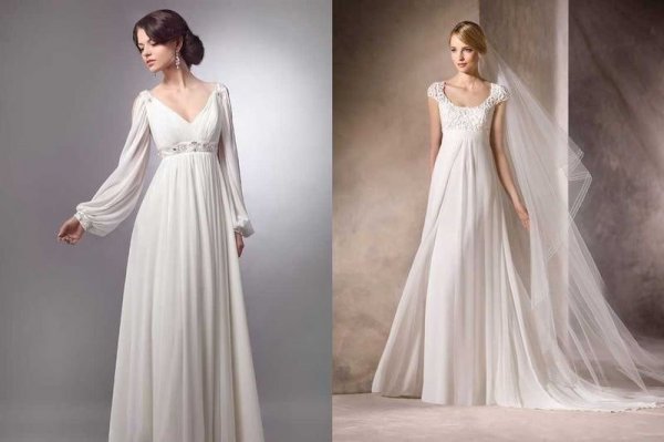 Đặc biệt với cô dâu có vòng 1 “chuẩn” nhưng vòng 2 vòng 3 lại hơi khiêm tốn một chút thì mẫu váy cưới dáng suông, chân váy dài rộng và thắt eo ở ngực là sự lựa chọn lý tưởng.
