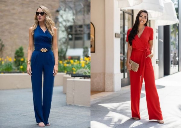 - Jumpsuit với thiết kế cổ chữ V và có thắt eo: bộ trang phục sẽ giúp bạn tôn dáng tối đa, đặc biệt phù hợp với bạn nữ có chiều cao khiêm tốn và vóc dáng nhỏ nhắn.