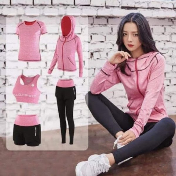 Set tập gym cho nữ kín đáo che bụng với màu sắc trẻ trung (ảnh: shopee.vn)Quần tập gym dài, độ rộng vừa đủ