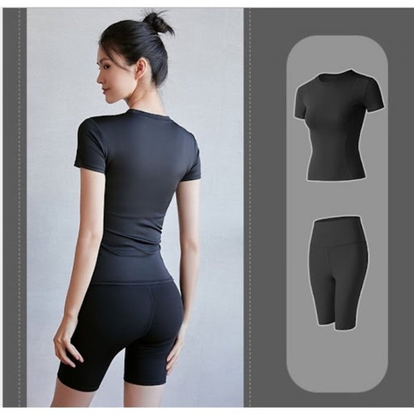 Set tập gym lửng màu đen cá tính thích hợp cho các nàng trông tròn trịa (ảnh: shopee.vn)Set đồ tập gym lửng
