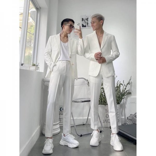 Bạn vẫn phân vân cách phối màu áo vest nam với quần thì trắng là sự lựa chọn nên cân nhắc (Ảnh: Shopee.vn)
