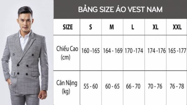 Sau đây là size vest nam theo số cân nặng và chiều cao cho bạn tham khảo: