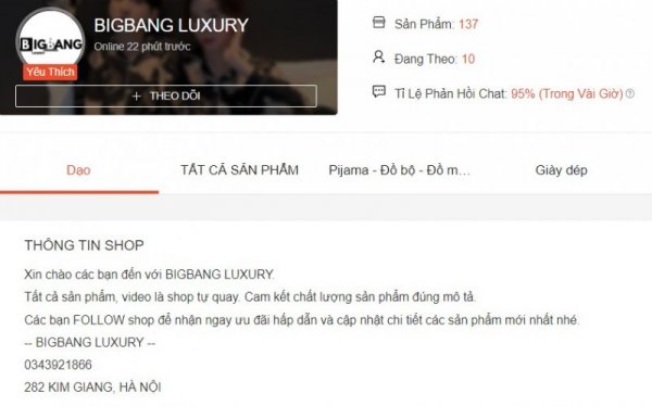 Có đông người theo dõi trong số các shop đồ ngủ nam trên Shopee hiện nay đó chính là BIGBANG LUXURY. Số người theo dõi hiện nay trên gian hàng Shopee của BIGBANG LUXURY là hơn 9 nghìn người với phản hồi tích cực 4,8 sao.
