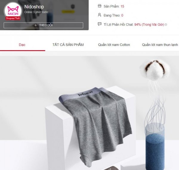 Nidoshop là shop quần lót nam trên Shopee với sản phẩm là đồ lót nhập khẩu chính hãng từ thương hiệu Miiow, một nhãn hàng nổi tiếng đến từ Trung Quốc. Quần lót nam Miiow có các đặc điểm nổi bật như: