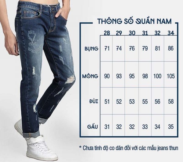 Chọn size quần jean nam theo chiều cao, cân nặng