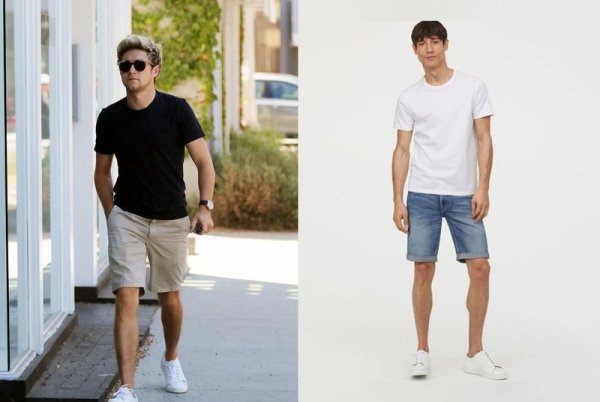 Áo thun trơn phối với quần short nam