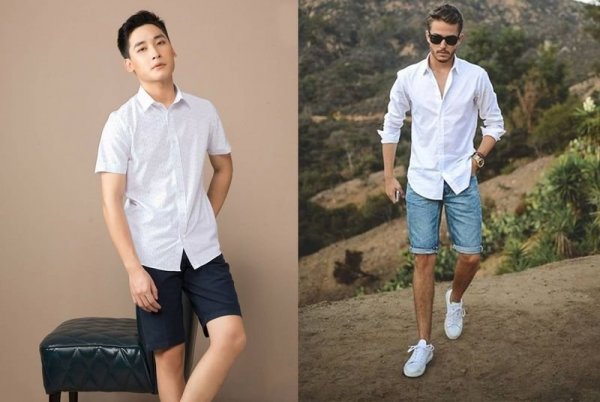 Nếu không biết cách phối đồ với quần short kaki nam sao cho thanh lịch và nam tính thì kết hợp với áo sơ mi là sự lựa chọn tuyệt vời. Bạn nên chọn quần short kaki trơn có độ dài ngang gối hoặc trên gối 2 – 3cm, phối cùng áo sơ mi ngắn tay hoặc dài tay. Lưu ý nên chọn áo có màu sắc phù hợp với quần, áo vừa vặn cơ thể và dài ngang cạp quần là đẹp nhất.