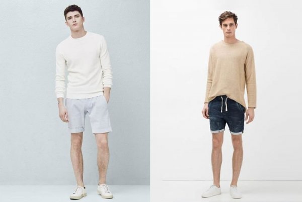 Phối áo len mỏng với quần short nam