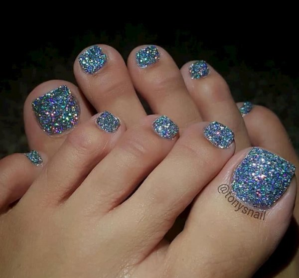 Để tạo ánh nhìn bắt sáng và lấp lánh, những mẫu nail kim tuyến chắc chắn nên nằm trong list “to-do” của bạn vào mùa Tết năm nay. Nếu bạn là cô nàng thích sự đơn giản, không muốn phải bỏ quá nhiều thời gian và chi phí “múa cọ” quá nhiều cho móng chân, vậy thì chỉ cần điểm thêm một ít gel kim tuyến nhã nhặn thế này là đủ.