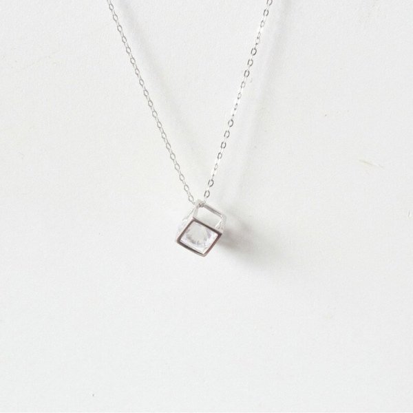 Mẫu dây chuyền nữ hình khối có phần mặt được thiết kế theo dạng các hình khối như hình hộp chữ nhật, lập phương,… và thường có điểm nhấn là một viên đá lấp lánh ở bên trong hình khối.