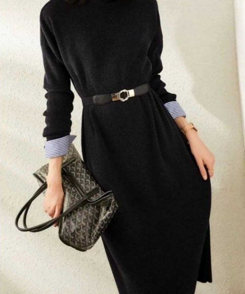 Phối phụ kiện thắt lưng cho váy suông chất len (ảnh: e.com.vn)