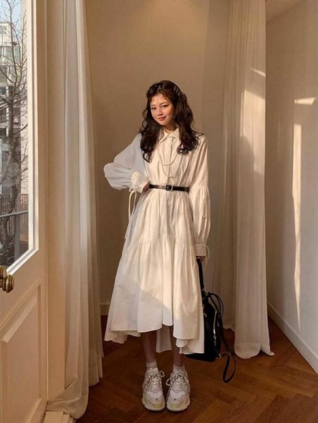 Phối thắt lưng cho váy suông tạo outfit trendy