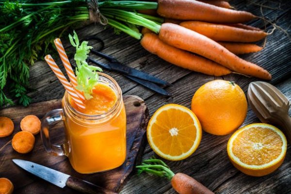 Nếu như cam là nguồn cung cấp chất chống oxy hóa và vitamin C thì cà rốt chứa nhiều beta-carotene và chất xơ giúp giảm cân cũng như tốt cho hệ tiêu hóa. Trong khi đó, gừng là một phương thuốc lâu đời có lợi cho chứng đầy hơi, co thắt dạ dày và chứa nhiều đặc tính chống viêm.
