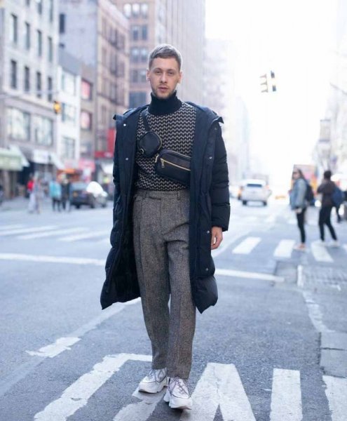 Không chỉ có quần jogger mới kết hợp được cùng với túi đeo chéo đâu các chàng trai nhé. Ngay cả khi bạn mặc quần tây nam thì outfit này cũng rất vừa vặn đấy.
