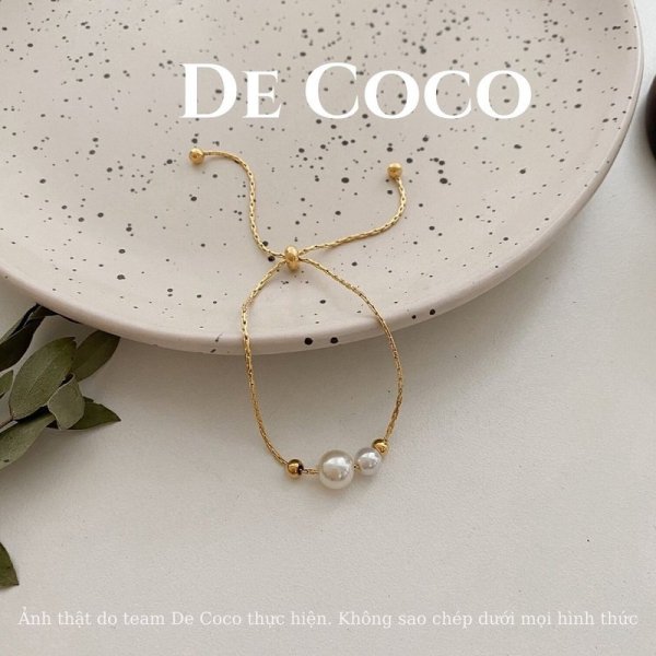 Vòng tay ngọc trai nhân tạo Baroque là một trong những cái tên làm nên sự nổi tiếng của De coco. Được làm từ chất liệu titanium, không gỉ, vòng có màu vàng gold đặc trưng kết hợp với viên ngọc trai nhân tạo bằng nhựa cao cấp, độ bền cao. Khi đeo, vòng sẽ mang lại sự sang trọng, tinh tế, tạo điểm nhấn cho đôi tay của bạn.