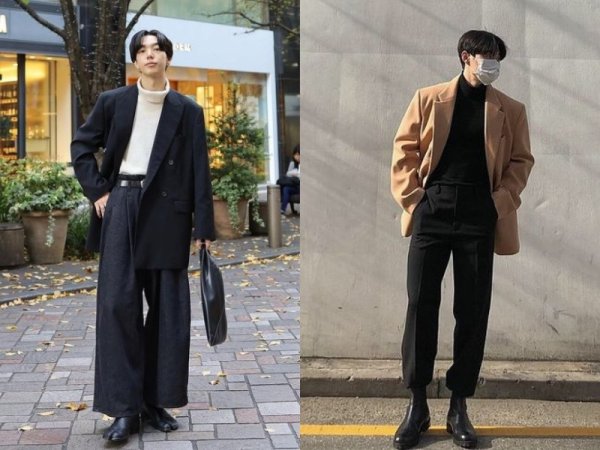Áo jacket phối quần tây – Set đồ đi du lịch cho nam (Nguồn: Pinterest) Mua NgayÁo turtleneck, khoác blazer và quần tây