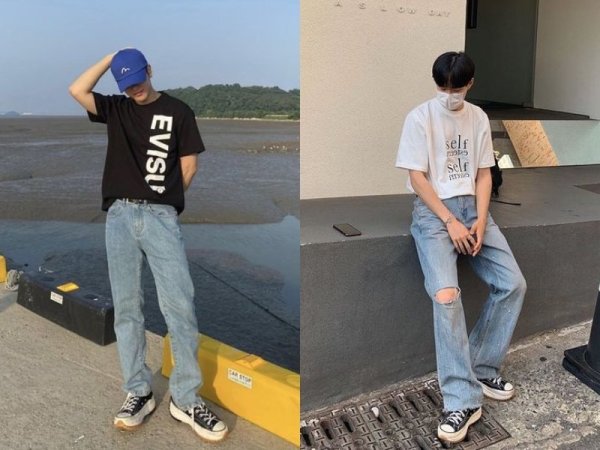 Tùy vào dáng người và style của mỗi cá nhân mà bạn sẽ chọn item áo thun, quần jean với các kiểu dáng khác nhau. Chẳng hạn, hai hình bên dưới đều là áo thun, quần jean nhưng lại mang đến vibe khác nhau. Một bên là thanh lịch, trưởng thành và hình còn lại có phần trẻ trung, năng động hơn.