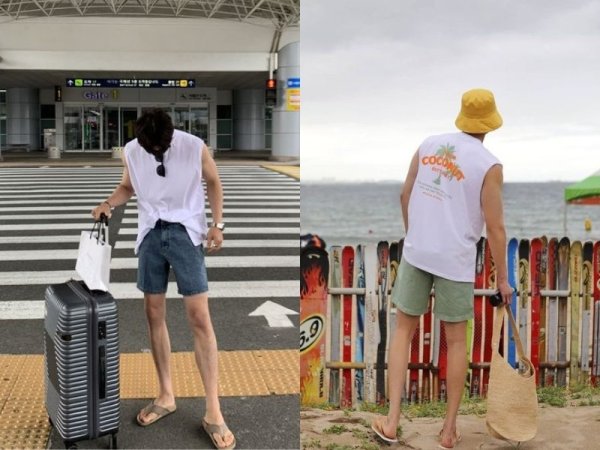 Áo ba lỗ và quần short là những item cơ bản, rộng rãi và thoáng mát trong ngày hè, đi du lịch biển. Outfit này mang lại sự thoải mái trong vận động, thấm hút mồ hôi tốt. Tip nhỏ là bạn nên chú ý đến màu sắc của trang phục khi phối đồ. Nếu bạn đã chọn áo thun có nhiều họa tiết thì hãy chọn quần trơn và ngược lại.