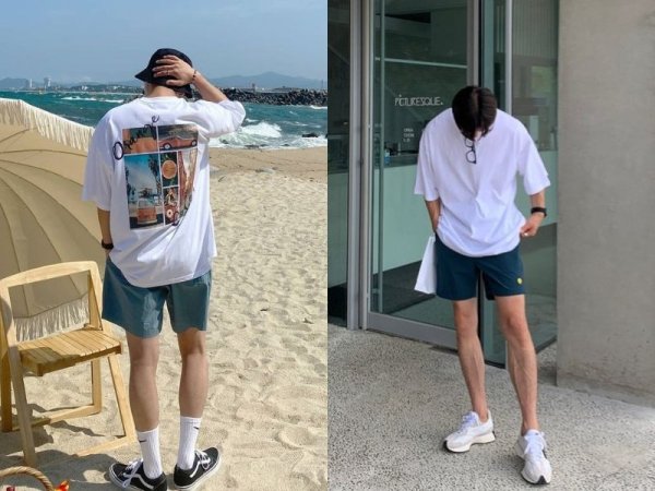 Quần short với áo thun cũng là outfit quen thuộc. Hãy chọn những áo thun oversize nếu thích sự thoải mái, năng động. Tuy nhiên, bạn cần chọn đúng áo có form dáng oversize chứ không phải là mua áo form slim fit rồi upsize lên nhé!