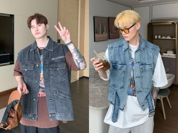 Đây là cách kết hợp mới mẻ giữa áo thun và gile denim. Outfit toát lên được sự năng động, cá tính, có hơi hướng đường phố nên rất dễ dàng khi di chuyển. Bạn có thể chọn phối với quần jeans, quần âu, quần jogger đều được nhưng hãy ưu tiên quần form ống suông, rộng nhé!
