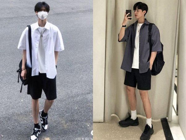 Set đồ này tạo ra cảm giác phóng khoáng, thoải mái phù hợp để đi chơi mùa hè. Ngoài ra, outfit này phù hợp với nhiều dáng người. Đặc biệt, khoác sơ mi bên ngoài có thể giúp các anh chàng béo bụng che được khuyết điểm đấy!