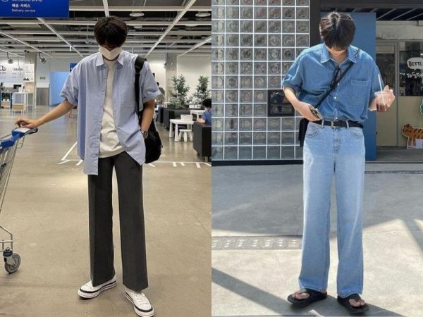 Áo sơ mi phối cùng quần jeans hoặc kaki sẽ giúp bạn nam lùn trông đầy đặn hơn (Nguồn: Shopee Blog)Áo polo và quần kaki cũng thích hợp cho các bạn nam lùn (Nguồn: Shopee Blog)