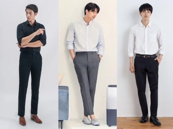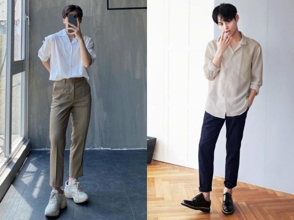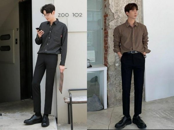 Sơ mi cổ nhọn sẽ giúp bạn đầy đặn hơn (Nguồn: Shopee Blog)Phối áo sơ mi cùng quần tây không quá rộng, không quá chật (Nguồn: Shopee Blog)