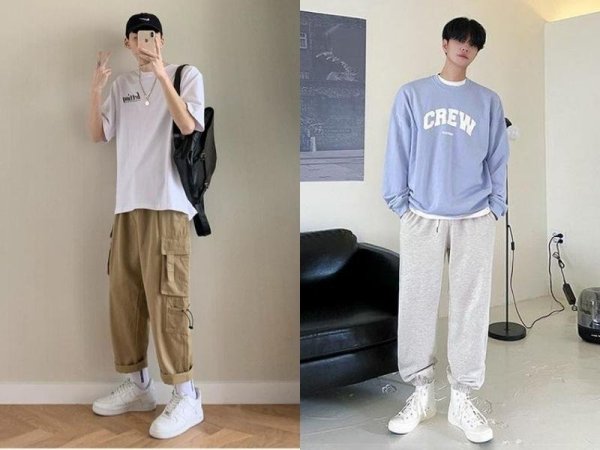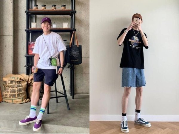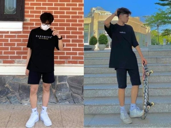 Quần short kết hợp cùng áo thun và giày sneaker tạo nên set đồ nam năng động (Nguồn: Shopee Blog)Ngược lại, nếu theo đuổi phong cách thời trang cool ngầu, bạn có thể chọn áo phông kết hợp với quần thun thể thao và một đôi sneaker đế chunky. Outfit độc đáo này sẽ giúp các bạn nam thể hiện cá tính và thêm phần lạnh lùng.
