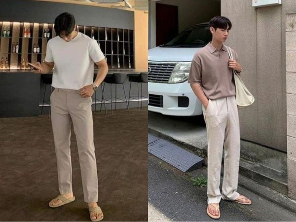 Áo thun và quần kaki là lựa chọn đơn giản cho các bạn nam (Nguồn: Shopee Blog)Ngoài ra, bạn cũng có thể kết hợp áo sơ mi cùng quần kaki và một đôi giày âu tối màu. Outfit nam này phù hợp để bạn đi chơi, đi làm hay đi dự tiệc, đem đến sự lịch lãm nhưng không hề cứng nhắc.