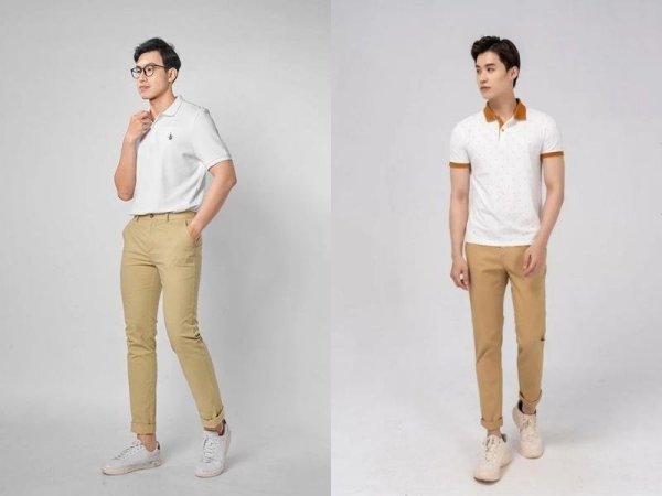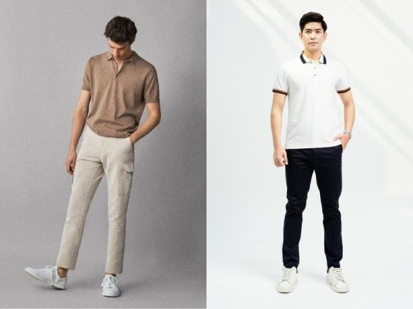 Set đồ với áo polo nam (Nguồn: Shopee Blog)Bạn nên chọn dáng quần kaki ôm sát hoặc gấu quần trên mắt cá để giúp tôn dáng tốt hơn, nổi bật chiều cao của bản thân. Để set đồ thêm thời trang, hãy chọn một đôi giày lười hay sneaker để lịch lãm và sành điệu hơn nhé!