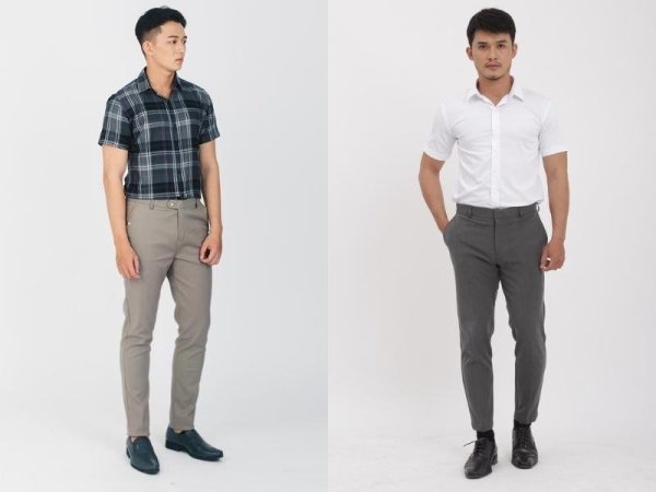 Quần kaki phối cùng áo sơ mi sẽ mang lại vẻ ngoài lịch thiệp cho bạn (Nguồn: Shopee Blog) Quần kaki phối cùng áo sơ mi ngắn tay (Nguồn: Shopee Blog)