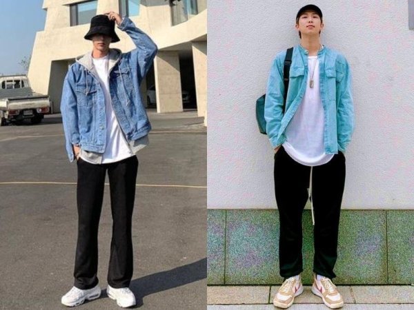 Áo khoác jean tạo ra outfit năng động cho các bạn nam (Nguồn: Shopee Blog)Ngoài ra, bạn có thể phối áo khoác jean màu xanh đậm, áo thun sáng màu hoặc cổ tròn cùng với quần kaki màu tối. Đừng quên kết hợp thêm giày sneaker hoặc boots cao cổ để trông sành điệu và thời trang hơn nhé!