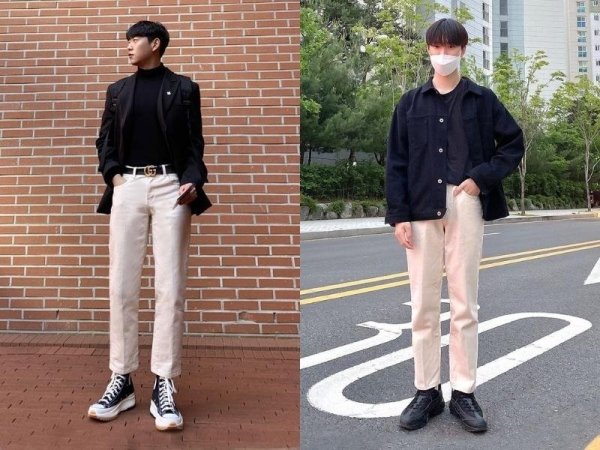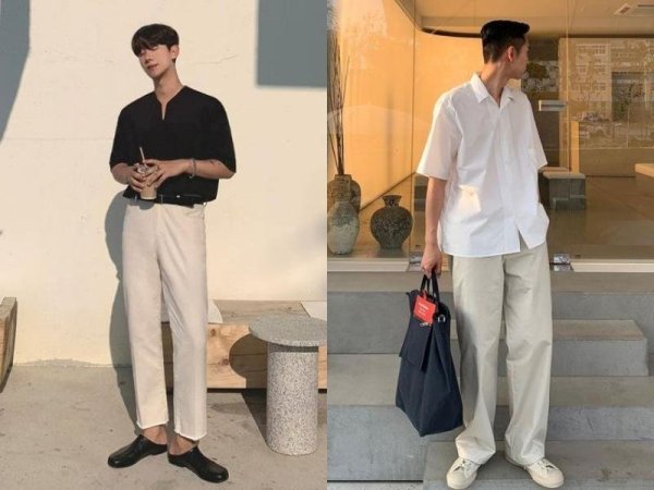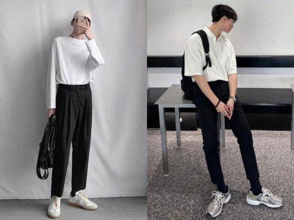 Set đồ tương phản sẽ giúp các bạn nam thu hút hơn (Nguồn: Shopee Blog) Áo đen và quần trắng là cách phối màu đơn giản nhất dành cho nam giới (Nguồn: Shopee Blog)