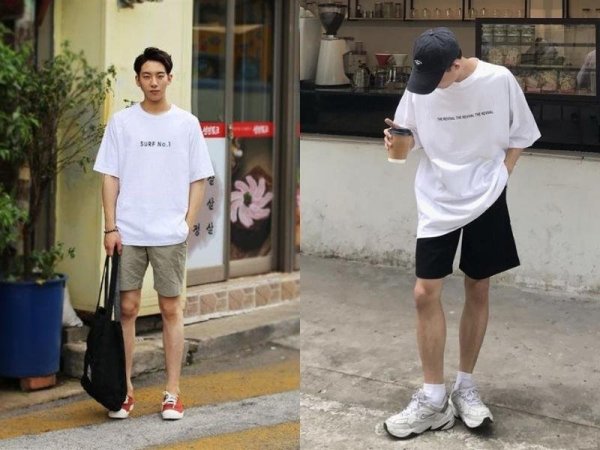 Nam giới có chiều cao khiêm tốn nhưng tỷ lệ cơ thể cân đối thì cách phối đồ hack chiều cao cho nam không quá khó khăn và phức tạp. Set đồ áo thun trắng và quần short sẽ giúp bạn trông đầy đặn và cao hơn. Kết hợp thêm giày sneaker để outfit thêm ấn tượng nhé!