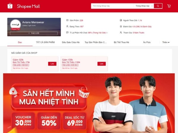 Trang Shopee của hãng thời trang Aviano (Nguồn: Shopee Blog)[url=https://shopee.vn/sp.btw2 MUA NGAY