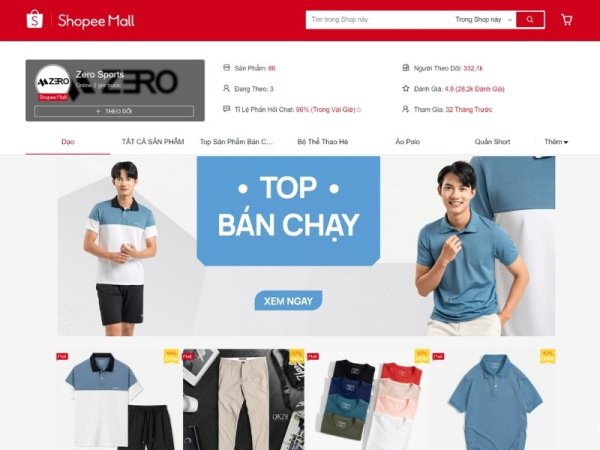 Zero Sports là một trong những shop bán đồ nam uy tín trên Shopee, với hơn 330,000 lượt theo dõi, nhận đánh giá 4.9 sao từ hơn 28,000 thành viên. Đây là shop thời trang được biết đến là một trong những thương hiệu chuyên cung cấp các trang phục thể thao dành cho nam theo phong cách năng động.