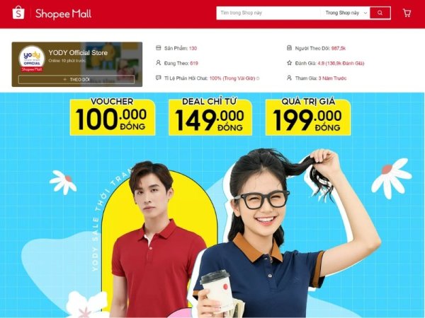 YODY là hãng thời trang nam nữ với hơn 130 sản phẩm trên sàn Shopee (Nguồn: Shopee Blog)
