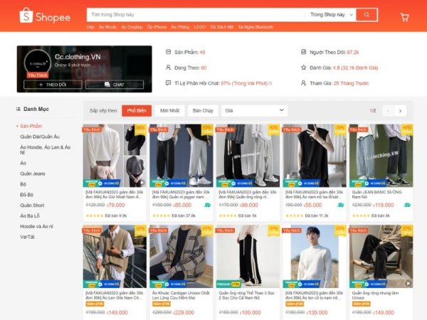 Trang Shopee và các sản phẩm của Cc.clothing.VN (Nguồn: Shopee Blog)