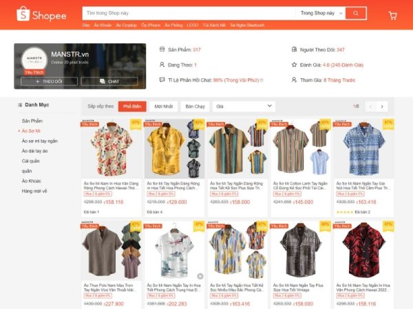 MANSTR.vn là shop thời trang nam quốc tế nhận được nhiều đánh giá tích cực trên Shopee. Các sản phẩm của shop tập trung chủ yếu vào các loại áo sơ mi nam in hoạ tiết sặc sỡ phong cách retro. Ngoài ra, shop còn cung cấp các loại quần short thể thao, vừa thời trang vừa năng động. Vậy nên, nếu bạn yêu thích phong cách thời trang cổ điển chất lượng tốt, giá phải chăng thì đây chính là một địa chỉ đáng quan tâm.